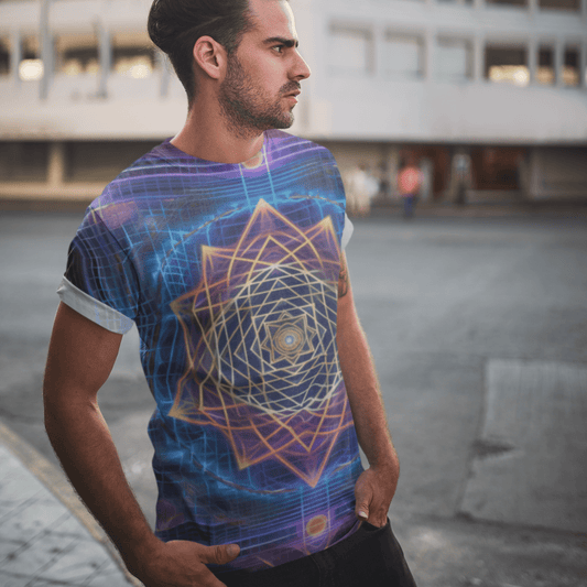 Sri Yantra 3D v2 Sacred Geometry Octane Colorful Symmetrical Sublimation - All Over Print (AOP) - Digital AI Art T-Shirt for Street or Festival Wear