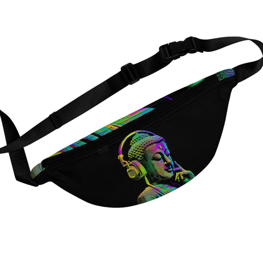 Subtle Smiling Buddha with Headphones Meta Zen Music Tribal Fusion Fanny Pack - Digital AI Art