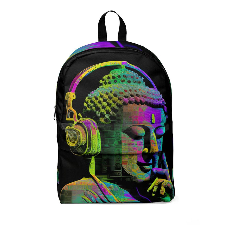 Subtle Smiling Buddha with Headphones Meta Zen Music Tribal Fusion Backpack Unisex Classic Backpack