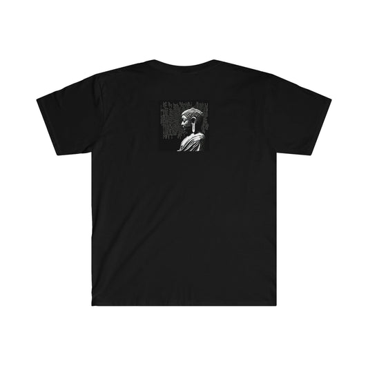 Meta Zen Future Retro V3 Statue Of A Buddha With Headphphones Subtle Smile - Ansi / Ascii / Ai Art T-shirt - Unisex Soft style - Alchemystics.Org