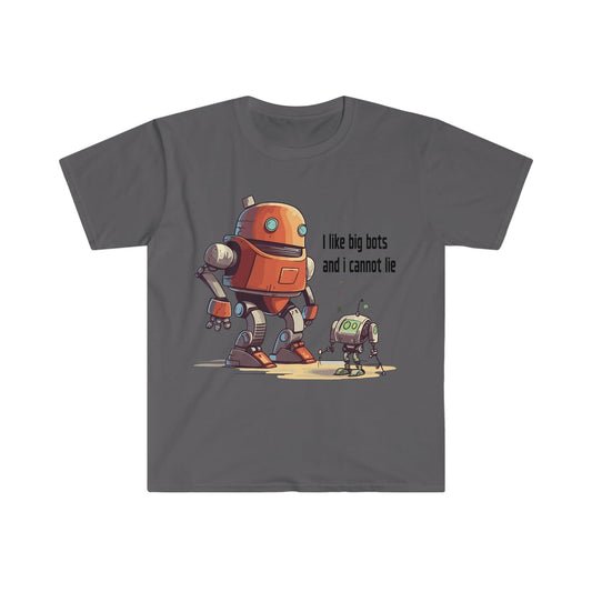 Tech Programmer Database Admin Web Developer Robot T-Shirt | I Like Big Bots | Men's and Women's Unisex Soft Style | Front Only