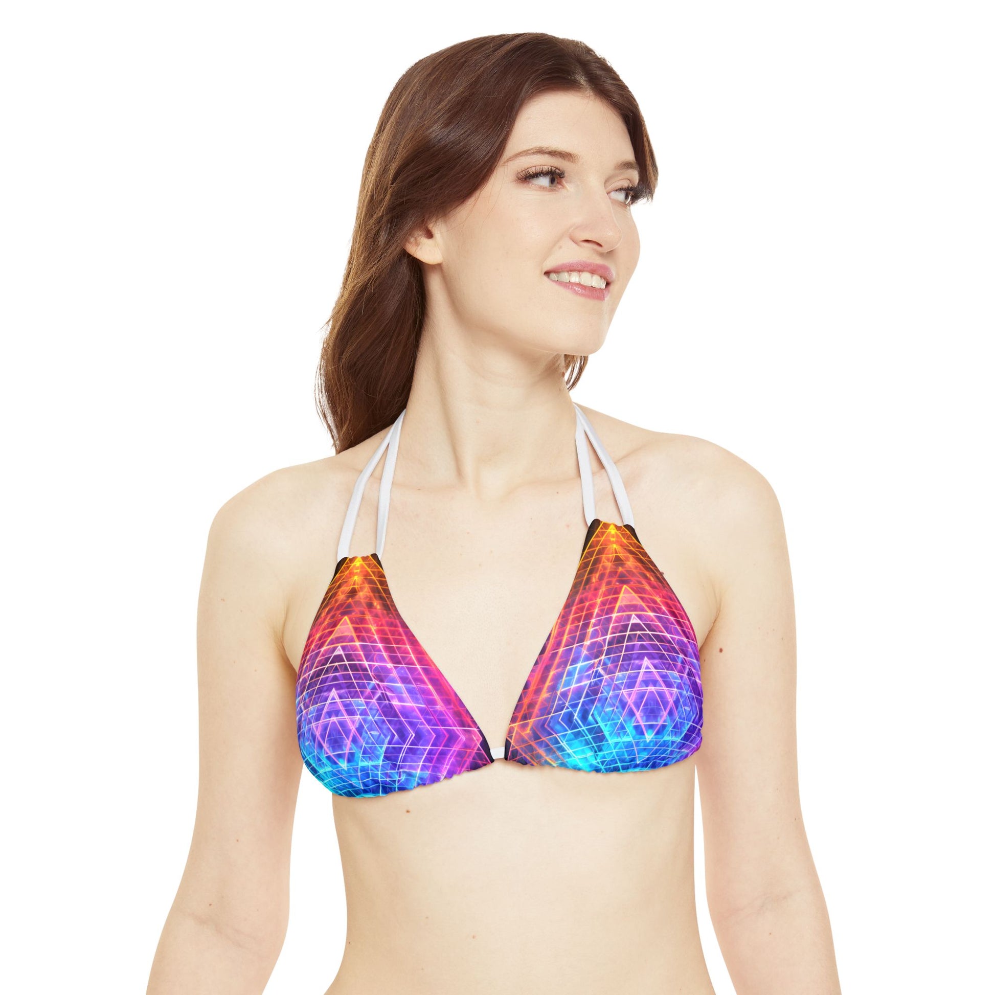 Psychedelic Vibrant Strappy Triangle Bikini Top (AOP) - Festival Rave Wear